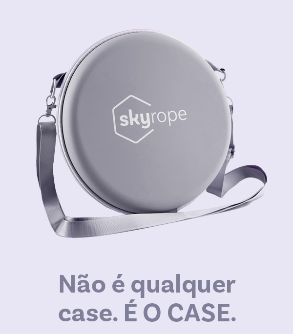 | O case da Skyrope é redondo para preservar o cabo no seu formato original. Ora, se não queremos um cabo quadrado, amassado, não podemos guardar em um case quadrado, né? Nosso case também tem espaço suficiente para levar seus grips, munhequeiras etc. Chega daquela bolsa cheia de acessórios espalhados. |